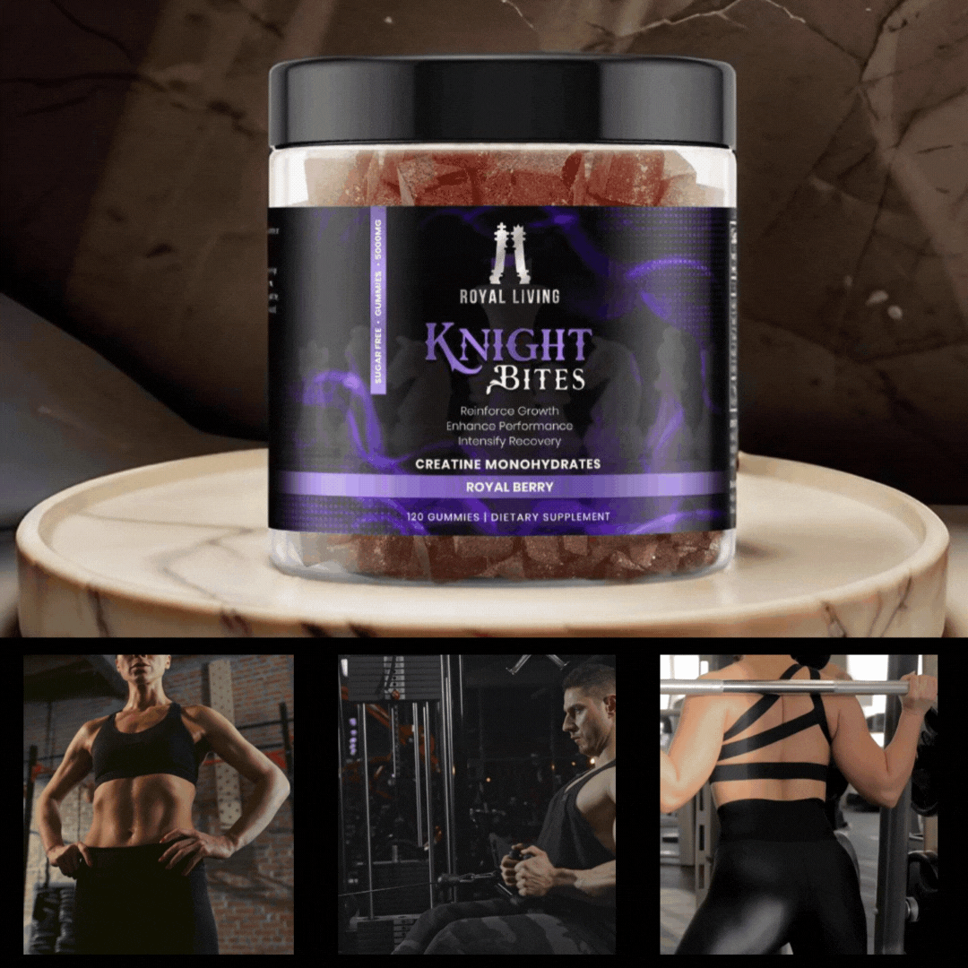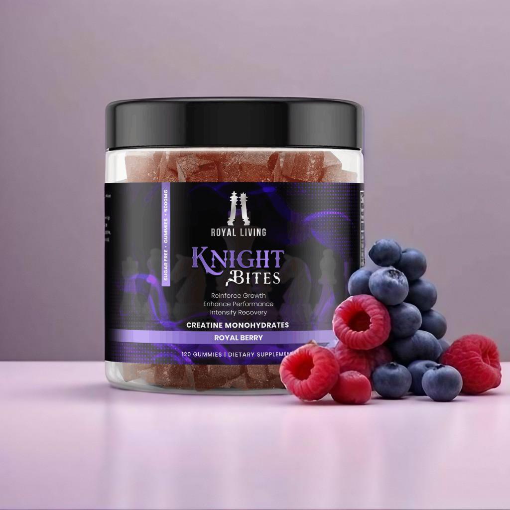 Infused with premium-quality creatine monohydrate, each gummy packs a punch of 5000 MG to fuel your muscles, boost endurance, and expedite recovery. Whether you're hitting the gym, dominating the field, or simply craving a burst of energy, our delectable royal berry flavored gummies are the perfect pre- or post-workout indulgence. With Knight Bites by your side, you're primed to amplify your training, maximize gains, and unleash your full potential. Get ready to harness the power of Knight Bites – your secret weapon for peak performance!